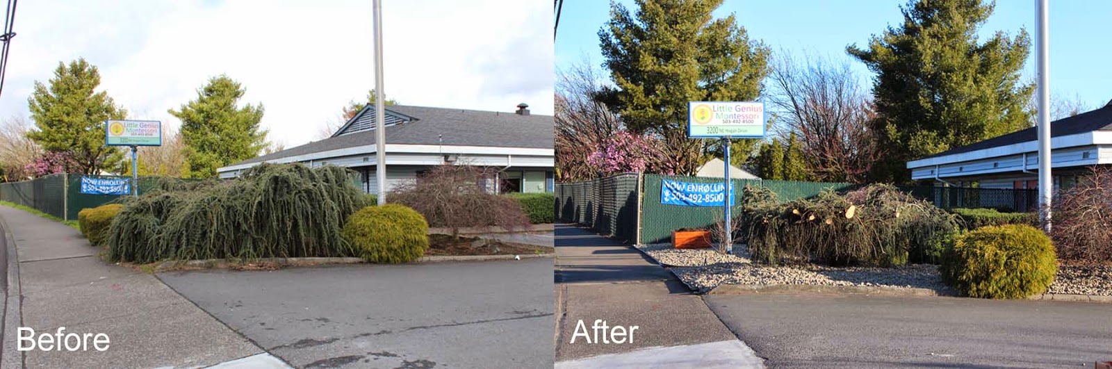 Thank you to all of our parent volunteers, friends and family who came out Saturday to help overhaul our school. We appreciate all of the support, hard work (muscle intense!), time, effort and energy that you continue to provide for our children! We feel good about supporting our community as tomorrow’s future is in the hands of today’s children. Here are a few before and after photos of outside.