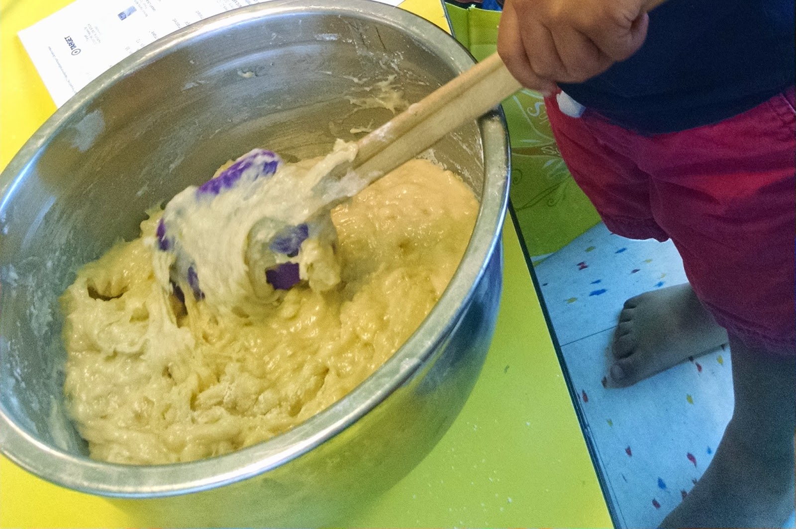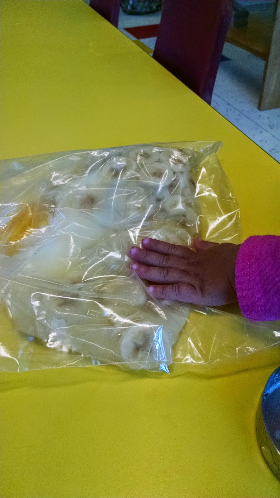 Our children have seen him! They actually helped make him this morning. They squished the bananas in a plastic bag and mixed all of the ingredients together.