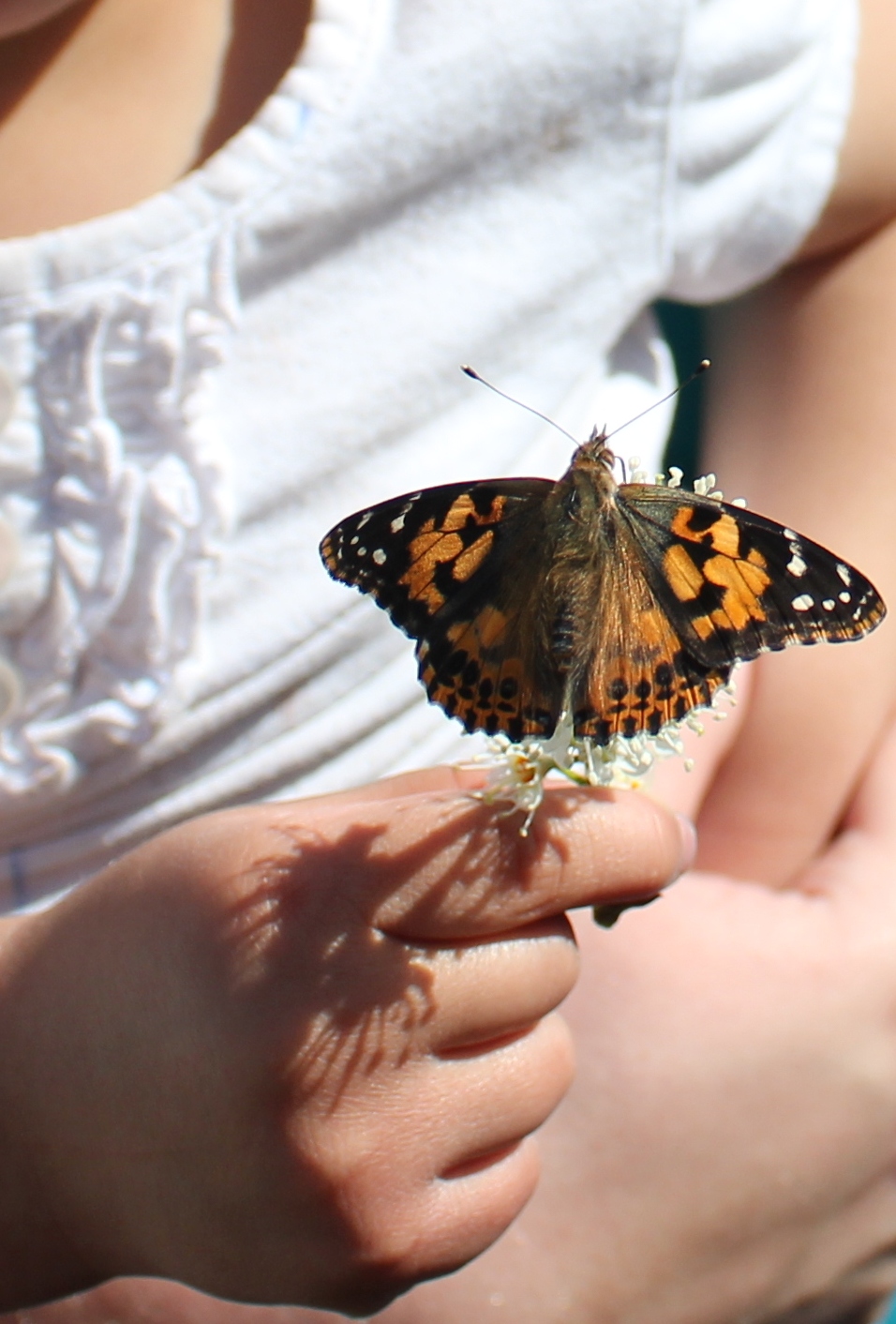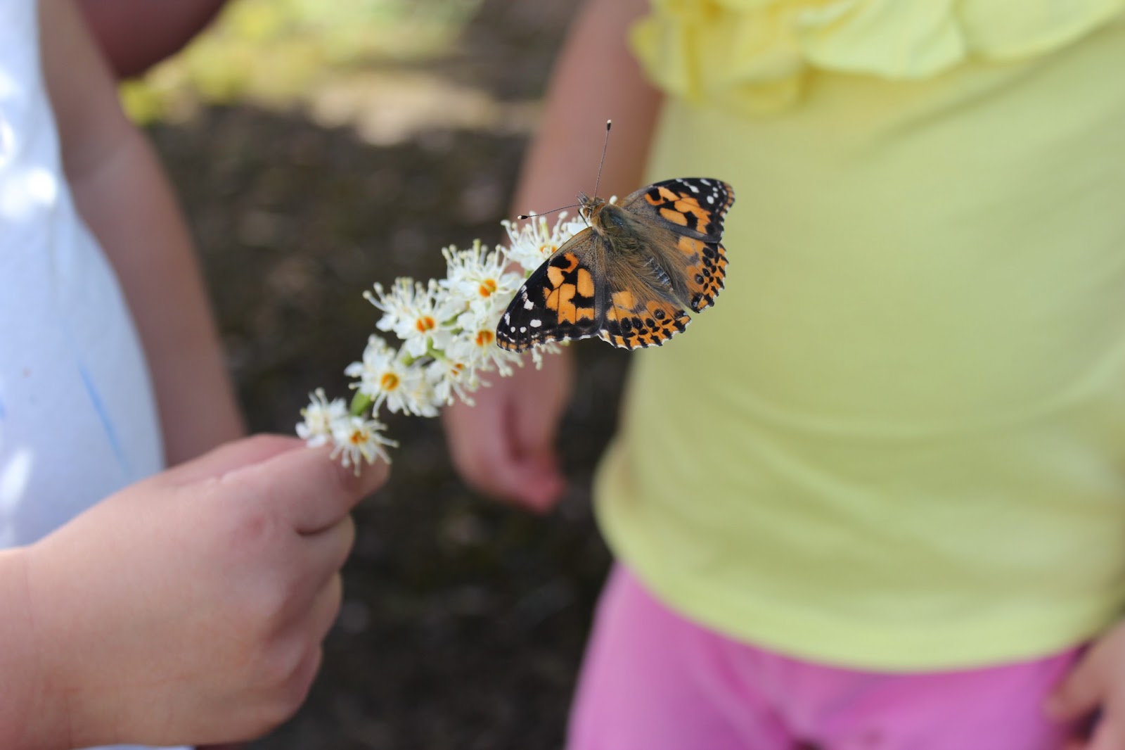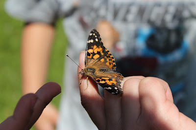 After watching the caterpillars transform into beautiful butterflies, the children were able to finally release them. The toddlers were good at holding their pointer fingers out to let the butterfly crawl on their finger & quietly watched it fly away. The primary preschoolers were very excited to see the butterfly fly! They chased after both butterflies as they fluttered away. It was a great learning opportunity for them to visually see the transformation of each stage of the butterfly process!