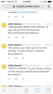 A tweet on Twitter (Twitter: @OurLittleGenius) is worth a good laugh! Sometimes children say (and do) the funniest things, our Montessori children are no exception. From Dinosaur kisses to taking a bite of every single cracker before eating a whole one.